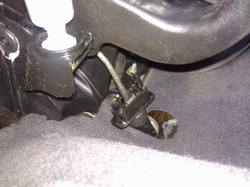 - Vytiahnuť závlacku co je medzi plynovým pedalom a brzdovym pedalom. Zavlacka je schovana za tycou riadenia.