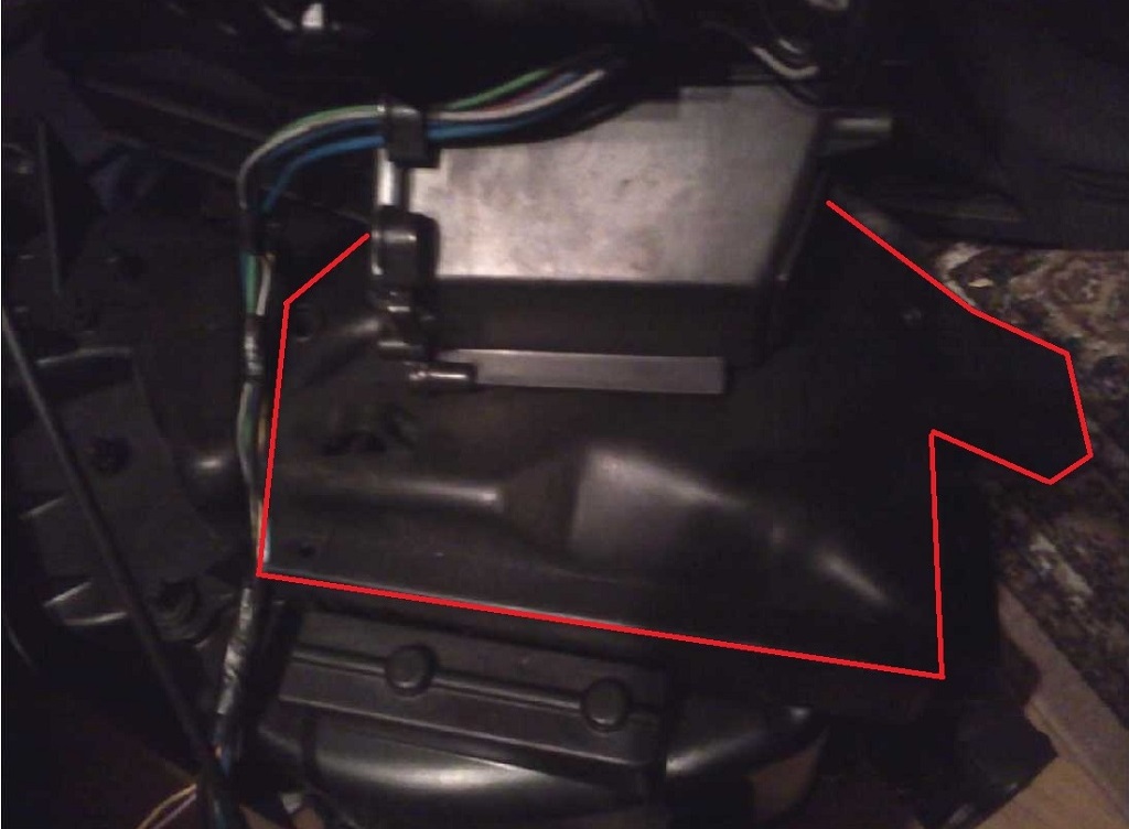 Čierny plast zakrývajúci radiátor a trúbky drží jeden šróbik a po odsunutú palubovky sa dá vytiahnuť smerom nadol k podlahe.