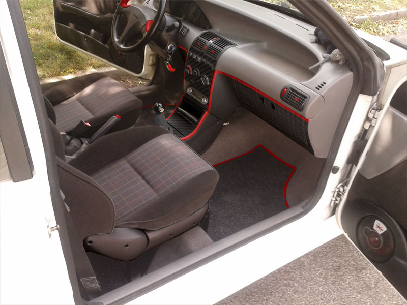 na kobercekoch, na palubovke to schvalujem, ale tie fukare a volant a rucna...to sa mi zda uz trosku vela....podla mna to netreba prehanat, keby bolo na mne tak ta cervena v interieri vobec nemusi byt