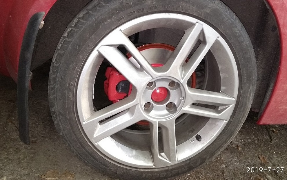 Tak teď už mám najeto přes 5 tisíc km, auto brzdí, ručka chodí famózně. Stále si zvykám na ten ostřejší nástup brzdného účinku. Jinak destičky celkem práší, ale takový ten světlejší prach, tak že to není až tak poznat. Více to bude vidět v zimě , kde mám čisté stříbrné disky. Kotouče jsou hezky hladké, barva drží. Co se týká toho vřetene, tak smysl otáčení nemá na nic vliv, teda já zatím na nic nepřišel, když jsem se nad tím zamyslel, proč to tak udělali.