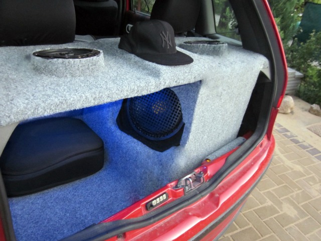Ten kufor je už minulosťou bola tam len aktívna tuba Sal zavretá v doskách teraz sú tam na plate dva ovály a bohate mi to stačí . Tak puntáš má menšie zmeny ako nový výfuk , zadný podnáraznik , športový filter,druhý volnat , ešte sa čaká na číre smerovky